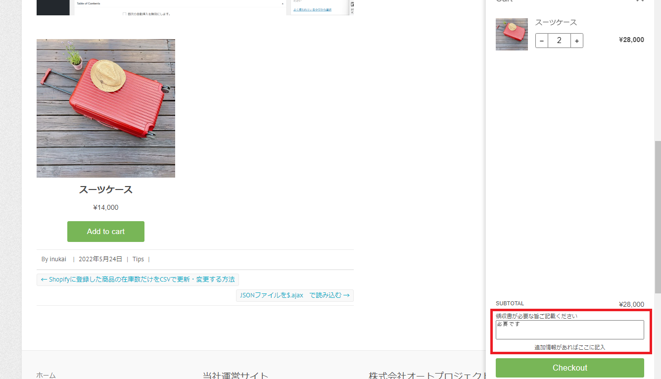 Shopify|カート画面に備考欄を作成し、WordPressで表示させる方法