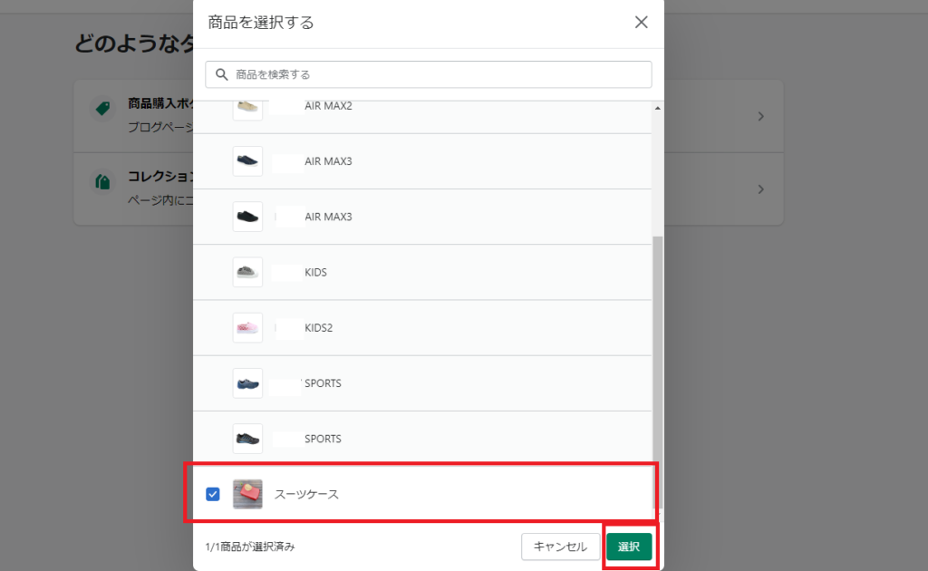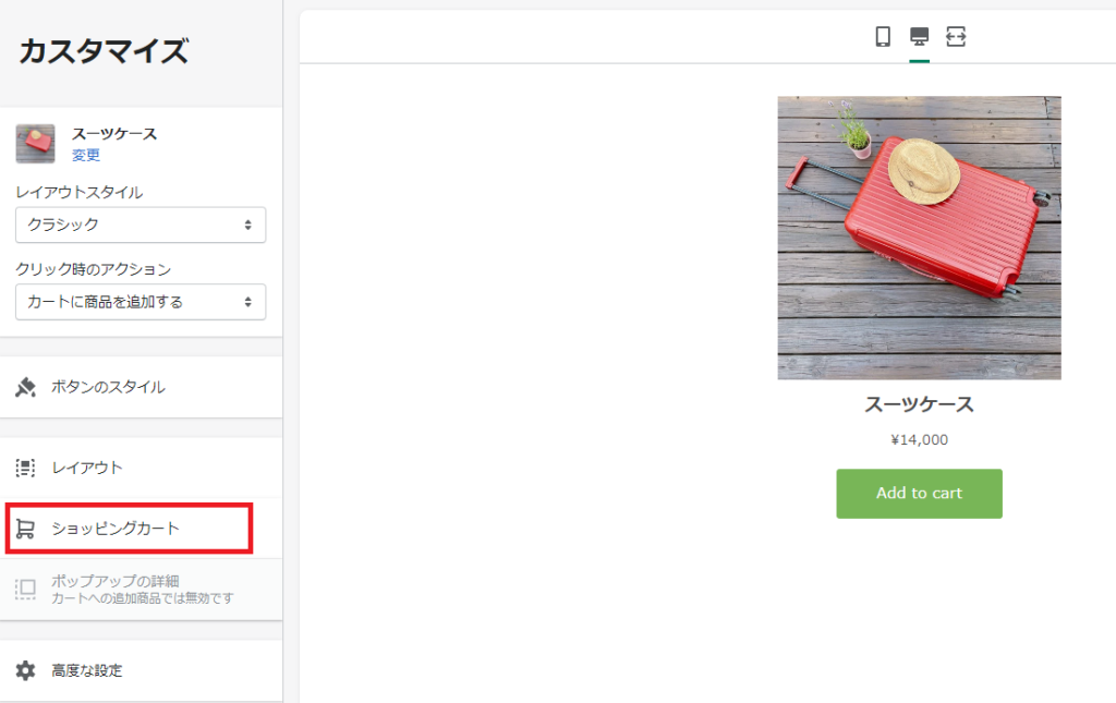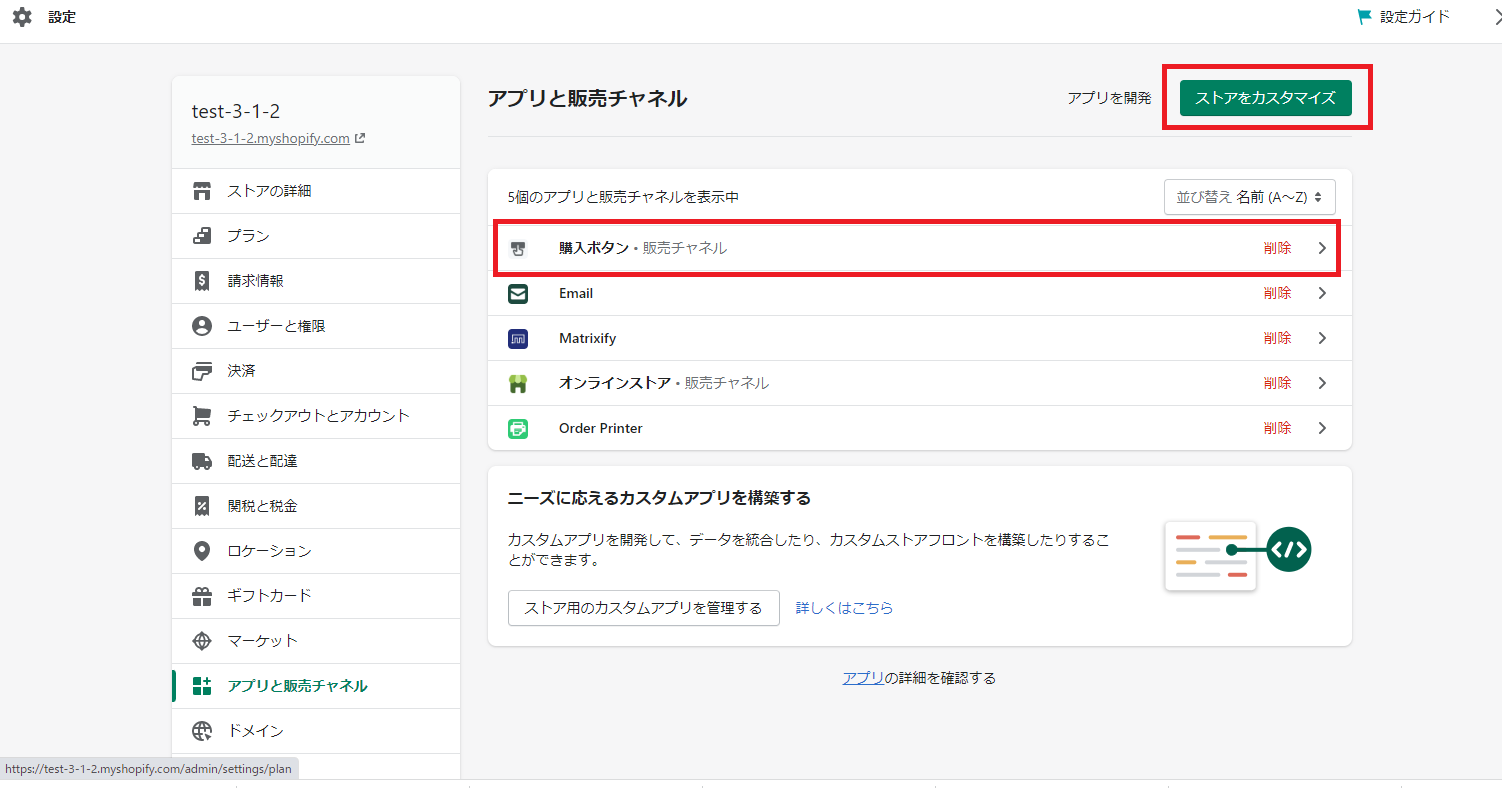 ②「購入ボタン」を選択 ➡ 「ストアカスタマイズ」を押下