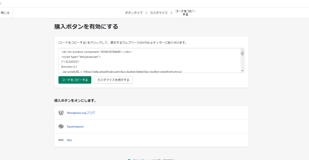 ⑨コードが生成されるので、「コードをコピーする」を押下