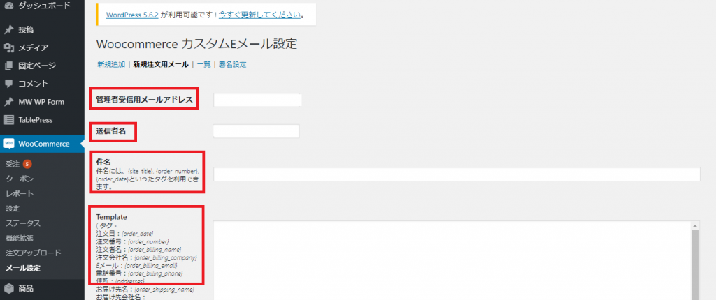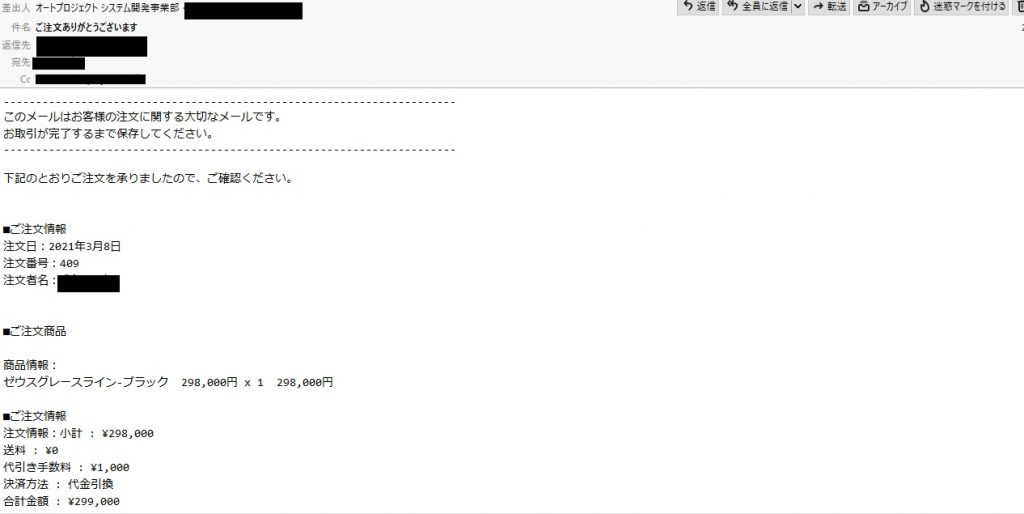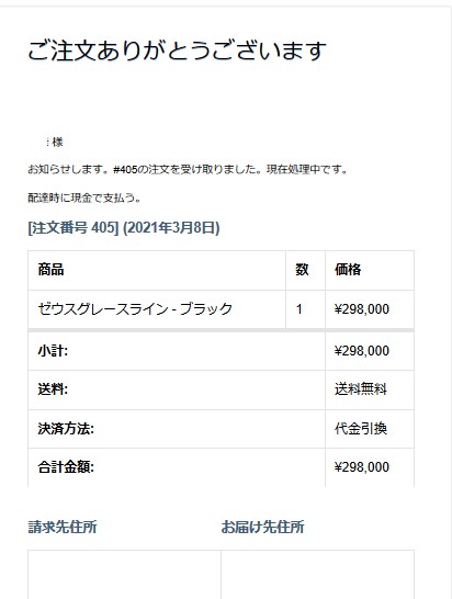 これにより、日本のECサイトっぽい新規注文メールを送信することが可能です。