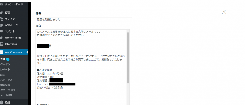 WooCommerce|発送メール作成方法と送信手順