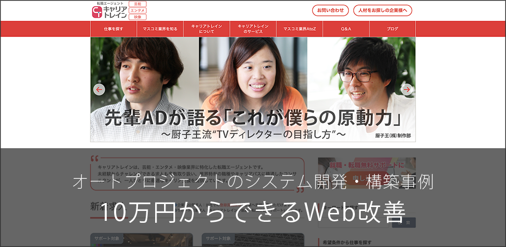 「10万円からできるWeb改善」– 求人サイト「キャリアトレイン」を今風のデザインにして使いやすくマイナーチェンジ|オートプロジェクトのシステム開発・構築事例