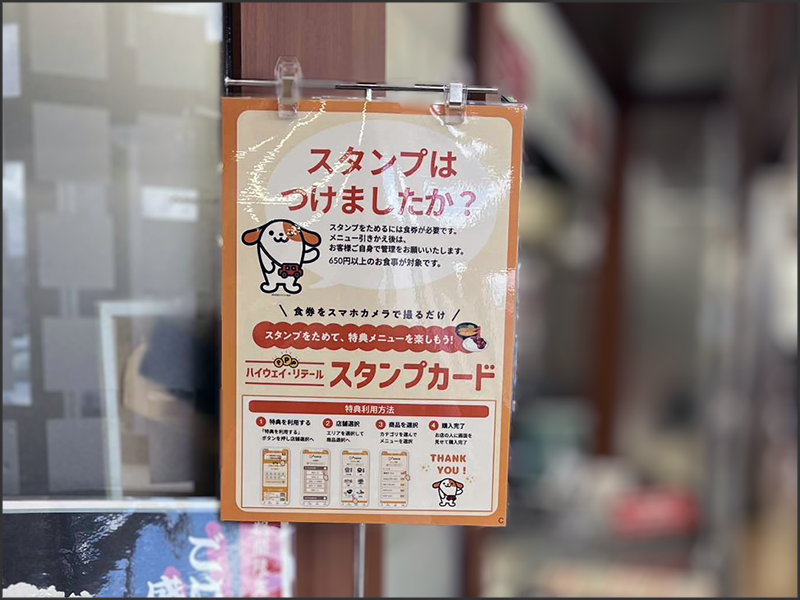 ハイウェイ・リテール スタンプカードは、スタンプが10個貯まると対象店舗でお好きな食事と引き換えられることができる、とてもお得なスタンプカードです。